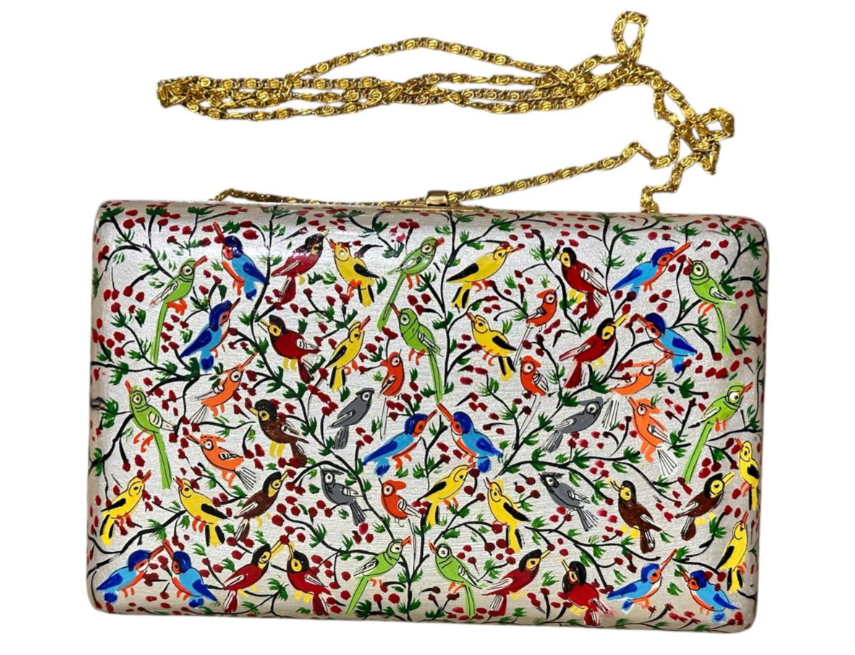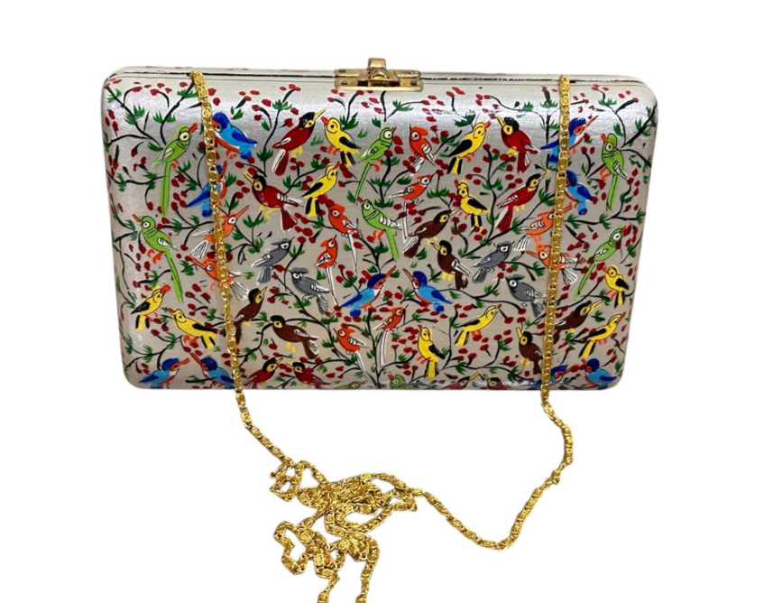 - These clutches are completely handmade made using paper Mache technique by artisans in Kashmir. The paper used is waste paper from the printing press there and are then hand painted by master artists.